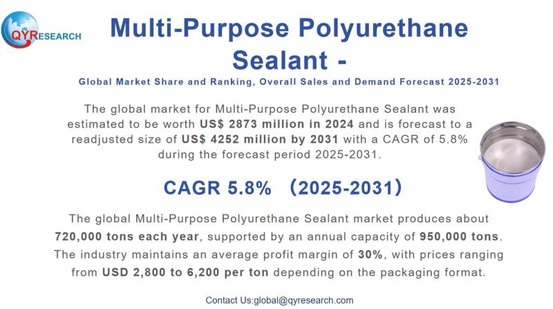 Global Leading Market Research Publisher QYResearch announces the release of its latest report "Multi-Purpose Polyurethane Sealant - Global Market Share and Ranking, Overall Sales and Demand Forecast 2025-2031". Based on current…