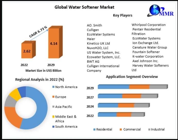 Water Softener Market was worth US$ 2.62 Bn. in 2022 and total revenue is expected to grow at a rate of 6.73 % CAGR from 2022 to 2029, reaching almost US$ 4.14 Bn. in 2029.Water Softener Market Report Scope and Research Methodology