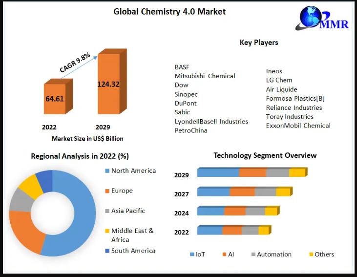 Chemistry 4.0 Market was valued at USD 64.61 Billion in 2022, and is expected to reach USD 124.32 Billion by 2029, exhibiting a CAGR of 9.8 % during the forecast period (2023-2029)Chemistry 4.0 Market Report Scope and Research Methodology