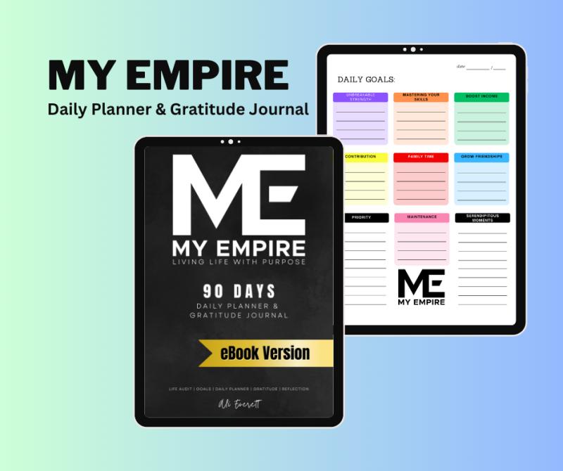 Build Your Empire In 90 DaysToday marks the launch of "My Empire," an innovative and empowering daily planner and gratitude journal designed to help entrepreneurs take control of their lives, achieve their dreams, and foster a positive mindset. Developed by Ali Everett, CEO of Everett Academy, "My Empire" offers a unique blend of organization and self-improvement, making it an indispensable tool for personal growth and productivity.