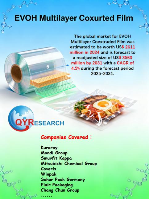 The global market for EVOH Multilayer Coextruded Film was estimated to be worth US$ 2611 million in 2024 and is forecast to a readjusted size of US$ 3563 million by 2031 with a CAGR of 4.5% during the forecast period 2025-2031.