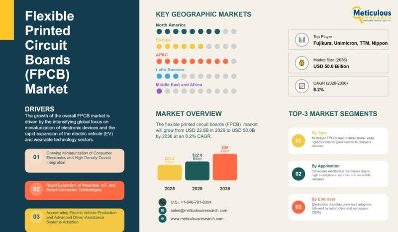 The global flexible printed circuit boards (FPCB) market has witnessed remarkable growth over the past few years, emerging as a key segment within the electronics industry due to its ability to meet the evolving demands of miniaturized, high-performance devices. Valued at USD 21.5 billion in 2025, the market is poised to expand to approximately USD 22.8 billion in 2026 and is expected to reach USD 50.0 billion by 2036, registering…