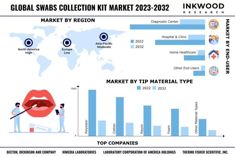 As per a new market research report launched by Inkwood Research, the Global Swabs Collection Kit Market is expected to reach $xx million by 2032, growing with a CAGR of around 2.42% during the forecasting period.Browse 53 Market Data Tables and 49 Figures spread over 216 Pages, along with an in-depth analysis of the Global Swabs Collection Kit Market by Tip Material Type, Sample Type, End-User & by Geography