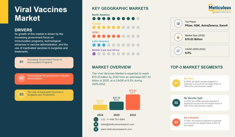 The global viral vaccines market was valued at USD 34.41 billion in 2024 and is projected to reach USD 70.53 billion by 2032 from an estimated USD 37.33 billion in 2025, growing at a CAGR of 9.5% during the forecast period (2025-2032). The market's strong growth trajectory is driven by increasing government focus on immunization programs, rapid technological advancements in vaccine development and administration, and rising use of inactivated and…