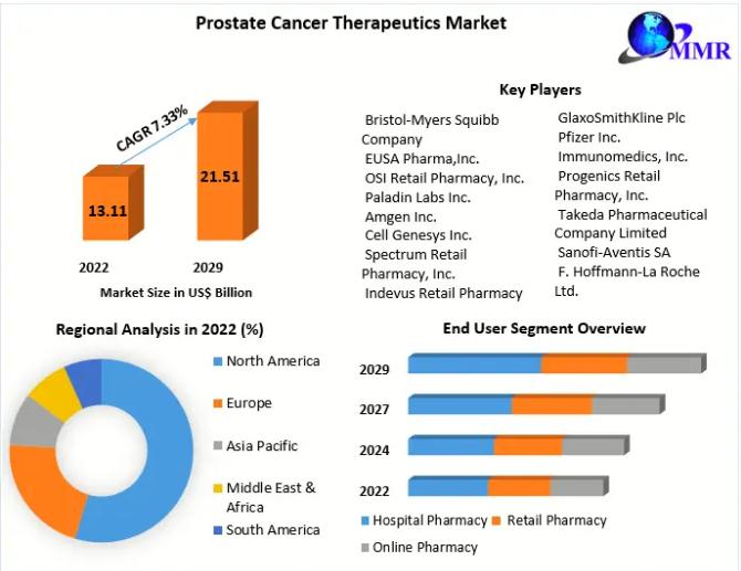 Prostate Cancer Therapeutics Market valued at USD 13.11 Bn in 2022 USD 21.51 Bn by 2029, at a CAGR of 7.33 Parcentage