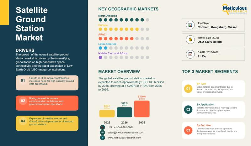 The global satellite ground station market is moving into a new era - one defined less by physical infrastructure and more by software intelligence, cloud integration, and the ability to manage an increasingly complex orbital environment from the ground up. The market was valued at USD 38.7 billion in 2025 and is projected to climb from USD 42.5 billion in 2026 to approximately USD 130.6 billion by 2036, growing at…