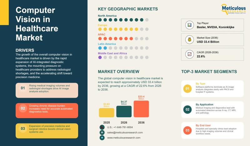 The global computer vision in healthcare market is growing at a pace that few industries ever see. What was a USD 3.63 billion market in 2025 is expected to reach USD 4.37 billion in 2026 and balloon to roughly USD 33.4 billion by 2036-a compound annual growth rate of 22.6%. To put that in perspective, the market is on track to nearly ten times its current size within a decade.…