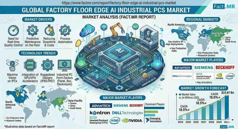 The industrial landscape is undergoing a seismic shift from centralized cloud computing to decentralized, "edge-first" intelligence. According to a comprehensive strategic analysis by Fact.MR, the global Factory Floor Edge AI Industrial PCs (IPC) market is projected to grow from USD 0.68 billion in 2026 to USD 1.37 billion by 2036, accelerating at a steady CAGR of 7.3%.