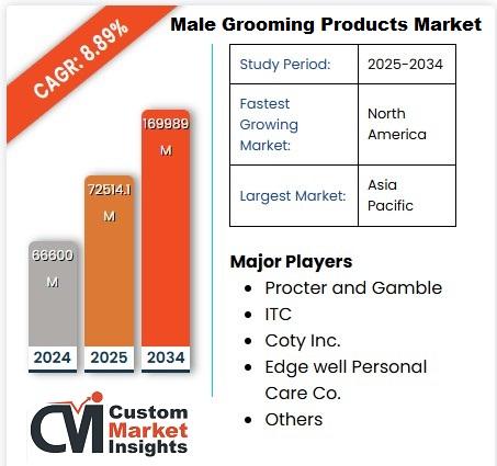 ➤ As per in-depth market research, the Global Male Grooming Products Market was estimated at approximately USD 72,514.1 Million in 2025.