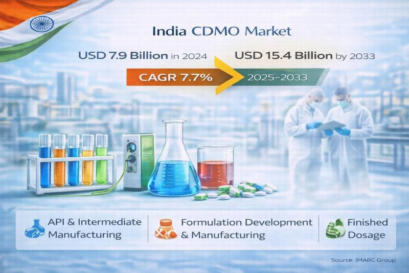 According to IMARC Group's report titled "India CDMO Market Size, Share, Trends and Forecast by Service Type, Type, Scale of Operation, Therapeutic Area, and Region, 2025-2033" the report offers a comprehensive analysis of the industry, including market share, growth, trends, and regional insights.
