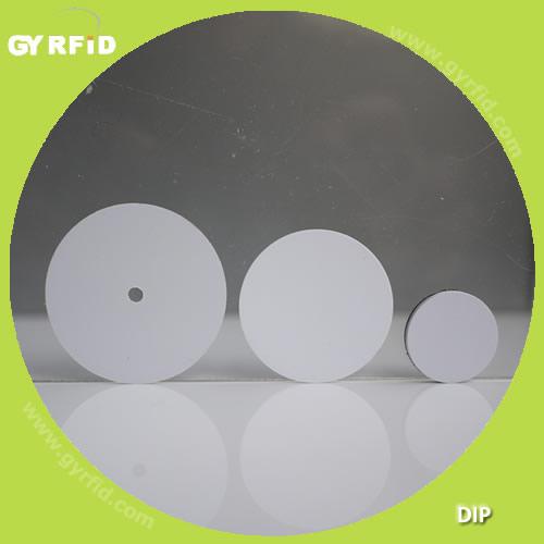 RFID Disc Tags are widely used for inventory tracking system or Automatic production systems. The RFID Disc Tag can also work on metal surface with anti-metal layer on it, also can be attached to goods surface by adhesive layer. There are abundant size options from 12mm to 50mm. GYRFID presents several types with different material and size to suitable customer’s application.DIP Series- PVC Disc Tag, PVC Laminated, thickness of 1.0-1.2mm
