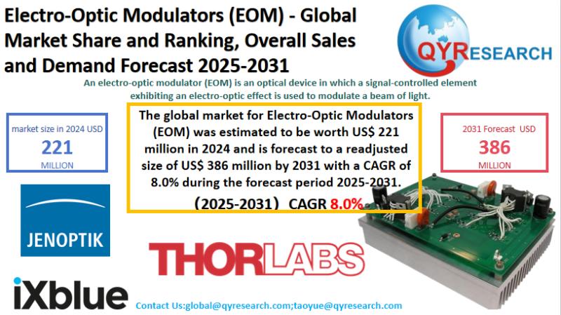 Global Leading Market Research Publisher QYResearch announces the release of its latest report "Electro-Optic Modulators (EOM) - Global Market Share and Ranking, Overall Sales and Demand Forecast 2025-2031". Based on current…