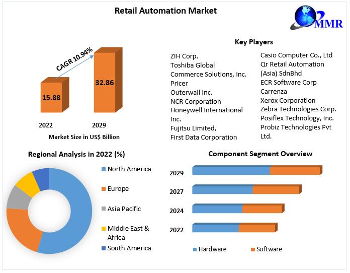 You can edit or delete your press release Retail Automation Market is expected to reach nearly USD 32.86 billion by 2029, exhibiting a robust Compound Annual Growth Rate (CAGR) of 10.94% during the forecast period. here