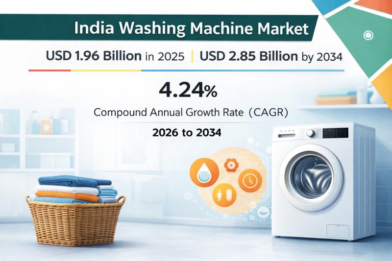 According to IMARC Group's report titled "India Washing Machine Market Size, Share, Trends and Forecast by Type, Capacity, Distribution Channel, End Use, and Region, 2026-2034" the report offers a comprehensive analysis of the industry, including market share, growth, trends, and regional insights.