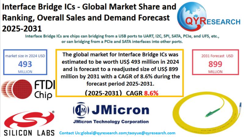 Global leading market research publisher QYResearch published the release of its latest report, "Interface Bridge ICs - Global Market Share, Ranking, Sales, and Demand Forecast 2025-2031". This in-depth report provides a complete analysis of the global Interface Bridge ICs market, offering critical insights into market size, share, demand, industry development status, and future forecasts. Whether you're a…