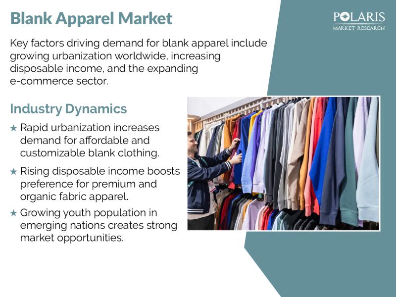 Polaris Market Research recently introduced the latest update on Blank Apparel Market that provides an extensive outlook of the market, analyzing key growth opportunities, challenges, risk factors, and emerging trends across diverse geographic regions. The report offers a definitive and meticulous analysis of the Blank Apparel Market size, share, demand, key growth factors, segmentation, country-level overview, and forecast.