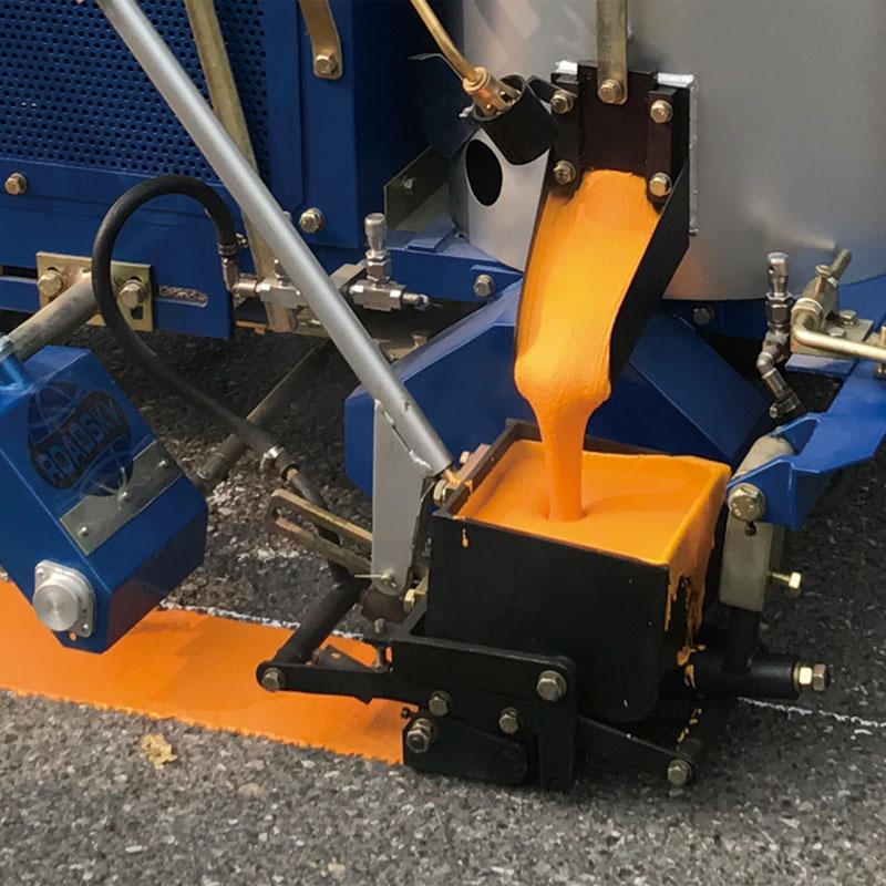To generate rumble strips, thermoplastic marks are applied in a thick, built-up layer. This coating hardens rapidly and sticks to the surface securely. It can be given additional ingredients to maintain its colour over time, increasing its ability to reflect light. They wear resistance because of their high strength and resistance.