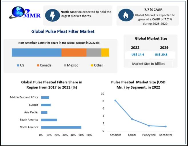 In the ever-evolving landscape of air filtration, the Global Pulse Pleat Filter Market has emerged as a stalwart, experiencing a meteoric rise from a valuation of USD 14.4 Bn in 2022 to a projected USD 20.8 Bn by 2029, boasting a robust CAGR of 7.7%.Know More About The Report: