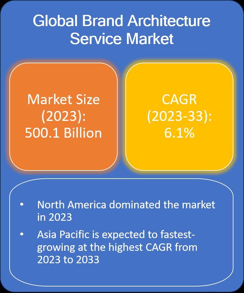 Key Highlights:• The global Brand Architecture Service Market size was valued at USD 500.1 billion in 2023 growing at a CAGR of 6.1% from 2023 to 2033.