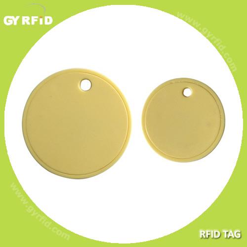 RFID Disc Tags are widely used for inventory tracking system or Automatic production systems. The RFID Disc Tag can also work on metal surface with anti-metal layer on it, also can be attached to goods surface by adhesive layer. There are abundant size options from 12mm to 50mm. GYRFID presents several types with different material and size to suitable customer’s application.