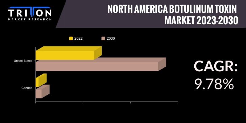According to Triton's report, the North America botulinum toxin market is expected for robust growth, projected to advance at a compelling compound annual growth rate (CAGR) of 9.78% within the forecast period spanning 2023 to 2030.This flourishing market encompasses key countries such as the United States and Canada, where a surge in demand for botulinum toxin injections is steering the market toward significant expansion.