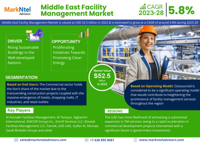 Middle East Facility Management Market Size & Growth Analysis: Current Trends and Future Prospects (2023-28)Among the recent reports from MarkNtel Advisors, the Middle East Facility Management Market Analysis, 2028 offers a detail-driven analysis of the current & future scenarios of the industry, including market size, drivers, challenges, opportunities, threats, regional shares, & key competitors, among others.
