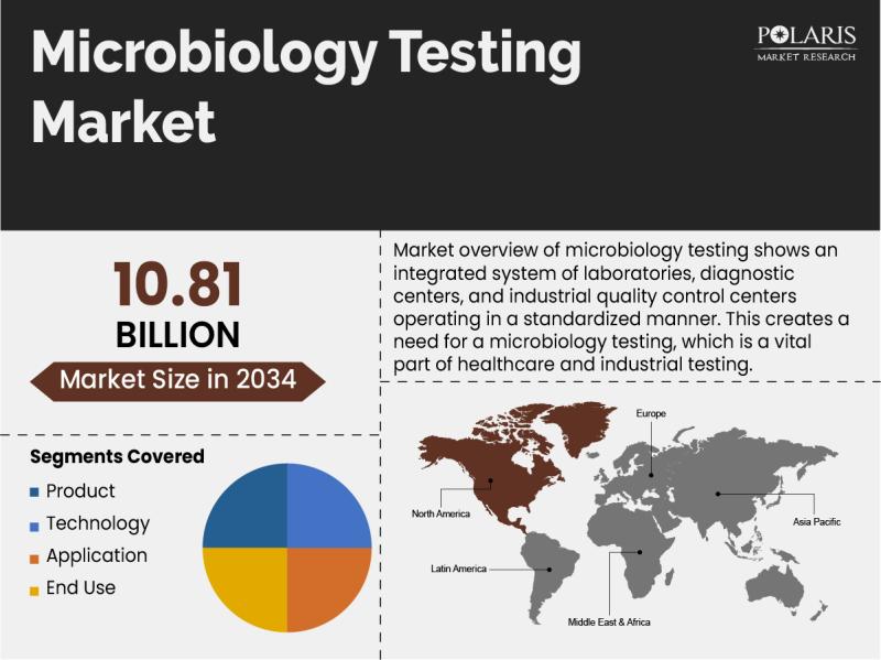 Global Microbiology Testing Market is currently valued at USD 7.95 Billion in 2025 and is anticipated to generate an estimated revenue of USD 10.81 Billion by 2034, according to the latest study by Polaris Market Research. Besides, the report notes that the market exhibits a robust 5.5% Compound Annual Growth Rate (CAGR) over the forecasted timeframe, 2026 - 2034