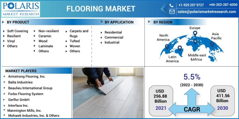 Polaris Market Research has recently published its latest report on Flooring Market Share, Size, Trends, Industry Analysis Report, By Product (Soft Covering, Resilient, Non-resilient, Carpets and Rugs); By Application (Residential, Commercial, Industrial); By Region; Segment Forecast, 2022 - 2030. It offers a thorough market outlook by providing authentic data to stakeholders, helping them in making strategic decisions. The report covers an analysis of Flooring Market share, size, regions, key segments, and all other important aspects related to the industry.The study includes all the major developments and innovations in the market. All the major regions and sub-regions are covered to equip readers with an in-depth knowledge of the regional landscape. Besides, it offers crucial data about the obstacles while providing information on overcoming the upcoming challenges in the market.