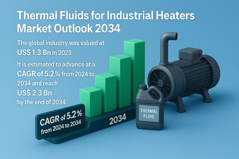 The global Thermal Fluids for Industrial Heaters Market is entering a new era of sustained expansion, propelled by strong demand across food processing, oil & gas, pharmaceuticals, and high-temperature industrial operations. According to the latest industry assessment, the market was valued at US$ 1.3 billion in 2023 and is projected to reach US$ 2.3 billion by 2034, advancing at a CAGR of 5.2% from 2024 to 2034.