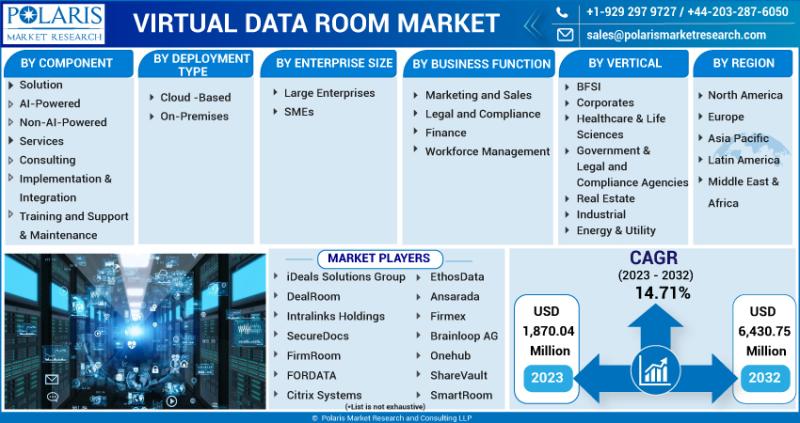 Polaris Market Research, a global market research and consulting company, has recently published a research study titled Virtual Data Room Market: By Size, Trends, Share, Growth, Segments, Industry Analysis and Forecast, 2032. The research report offers an in-depth analysis of the industry, covering all the major aspects, such as Virtual Data Room Market share, regions, and key segments. It describes the overall market size by analyzing historical data and future forecasts. The study has been meticulously prepared by skilled experts dedicated to achieving remarkable growth in the industry.
