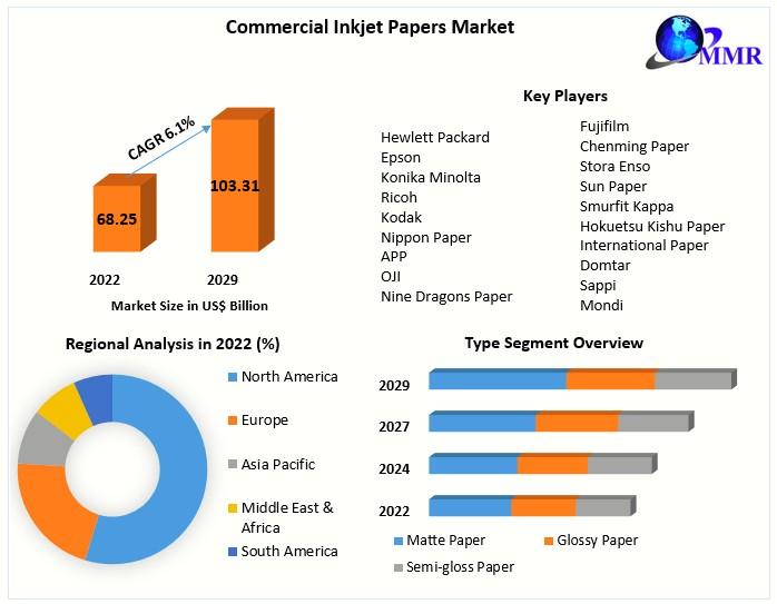 Commercial Inkjet Papers Market to Reach USD 103.31 Bn by 2029, emerging at a CAGR of 6.1 percent and forecast 2023-2029