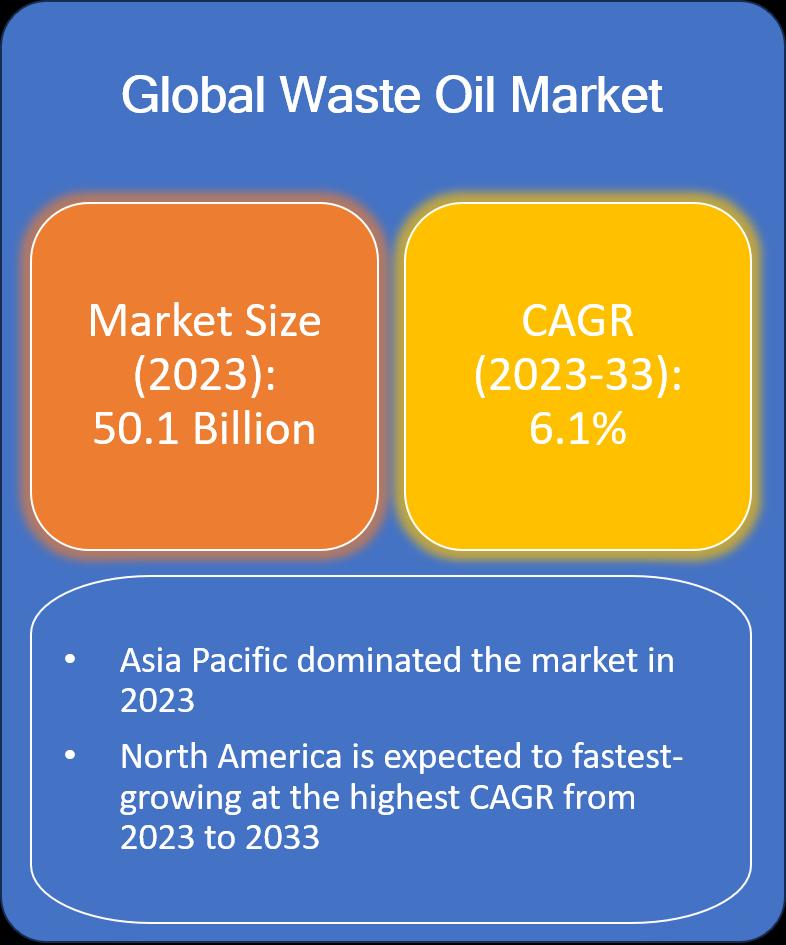 As per the study initiated by Evolve Business Intelligence, the global Waste Oil Market size accounted for USD 50.1 Billion in 2023, growing at a CAGR of 6.1% from 2023 to 2033. Waste oil refers to any petroleum-based or synthetic oil that has become unsuitable for its original purpose due to the presence of impurities or contaminants. It is generated as a byproduct of various industrial processes, automotive activities, and other applications where oil is used. Waste oil can include used motor oil, hydraulic oil, transmission fluid, and other lubricants.Request/Download PDF Sample: https://report.evolvebi.com/index.php/sample/request?referer=OpenPR&reportCode=021961