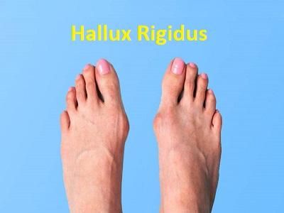 Hallux Rigidus means stiff big toe occurs when the joint at the base of the big toe stiffens. It is the most common arthritic condition in the foot and can make walking painful and difficult. Hallux Rigidus usually develops in adult between the ages of 30 to 60. Hallux Rigidus can be caused by either a traumatic injury or through overuse of foot. Overpronation or too much stress on the joint is one of the reason. Repetitive weight bearing in a dorsiflexed position such as when walking up mountains or driving forward in a rugby scrum or similar conditions can be a factor.