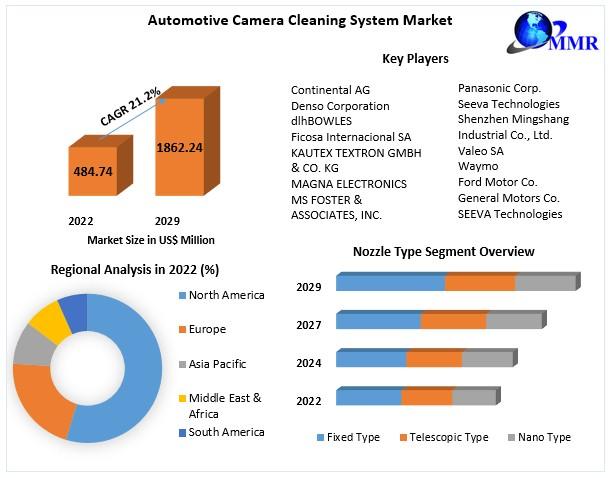 Automotive Camera Cleaning System Market is anticipated to reach US$ 1862.24 Mn by 2029 from US$ 484.74 Mn in 2022 at a CAGR of 21.2% during a forecast period.Revolutionizing Visibility: The Essence of Automotive Camera Cleaning Systems