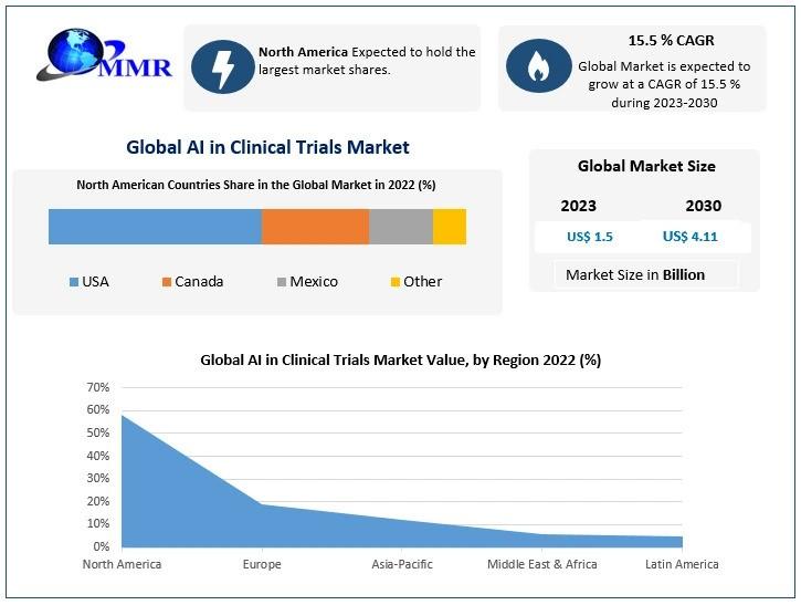 Global AI in Clinical Trials Market Set to Surge to USD 4.11 Billion by 2030 with a Remarkable 15.5% CAGR from its 2023 Value of USD 1.5 Billion"