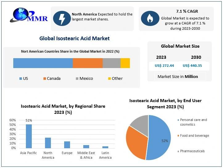 "Isostearic Acid Market Sees Robust Growth: Projected to Reach USD 440.35 Mn by 2030 with a 7.1% CAGR from the Valued USD 272.44 Mn in 2023"