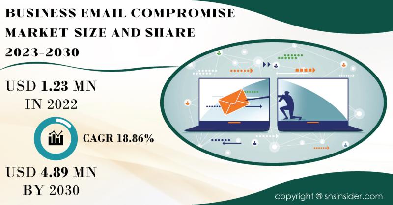 Business Email Compromise Market Scope and OverviewThe Business Email Compromise Market has witnessed substantial growth, marked by a valuation of USD 1.23 billion in 2022, projecting a significant leap to reach USD 4.89 billion by 2030. The market anticipates an impressive CAGR of 18.86% during the forecast period of 2023-2030, as revealed in the SNS Insider report.