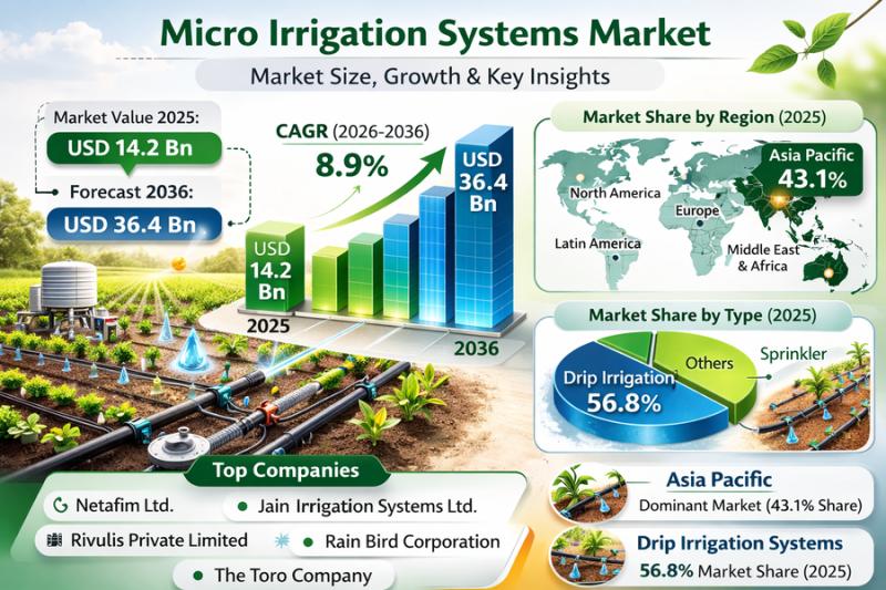 Micro Irrigation Systems Market to Reach USD 36.4 Billion by 2036, Growing at 8. …