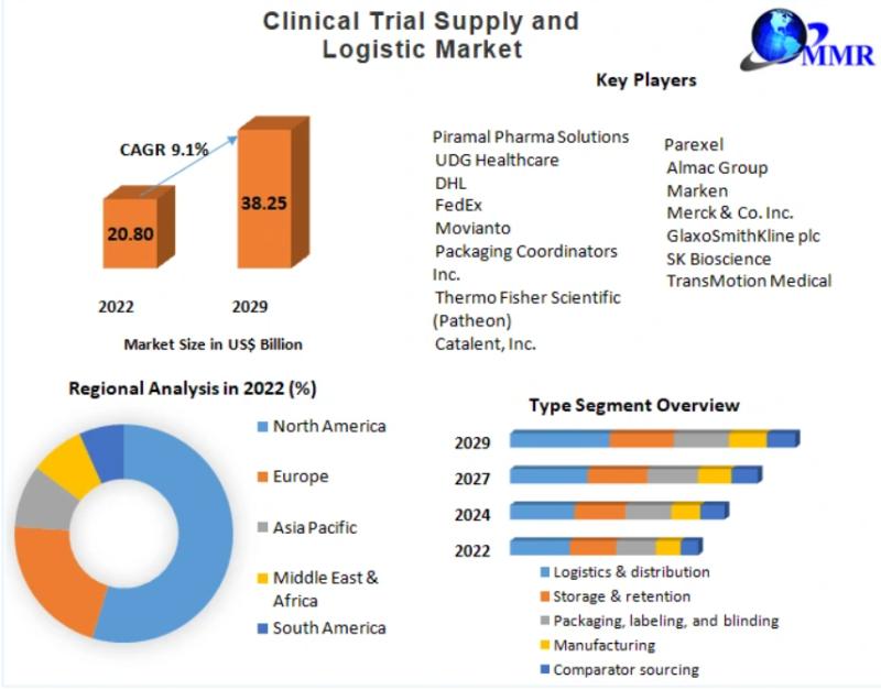 Market Values:The Global Clinical Trial Supply and Logistic Market, valued at US$ 20.80 billion in 2022, is projected to witness a substantial growth trajectory, reaching nearly US$ 38.25 billion by 2029. The market is anticipated to grow at a remarkable Compound Annual Growth Rate (CAGR) of 9.10% during the forecast period from 2022 to 2029.