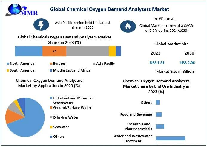The Chemical Oxygen Demand Analyzers Market was valued at US$ 1.31 Bn. globally in 2023. From 2024 to 2030, it is forecasted to grow at a CAGR of 6.7%, reaching US$ 2.06 Bn.Chemical Oxygen Demand Analyzers Market Report Scope and Research Methodology