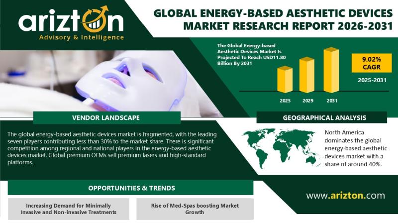 According to recent research by Arizton Advisory & Intelligence, the global energy-based aesthetic devices market is projected to grow from USD 7.03 billion in 2025 to USD 11.80 billion by 2031, driven by rising demand for minimally invasive aesthetic procedures, expanding med-spa networks, increasing male aesthetic adoption, and continuous advancements in AI-powered and next-generation aesthetic technologies.