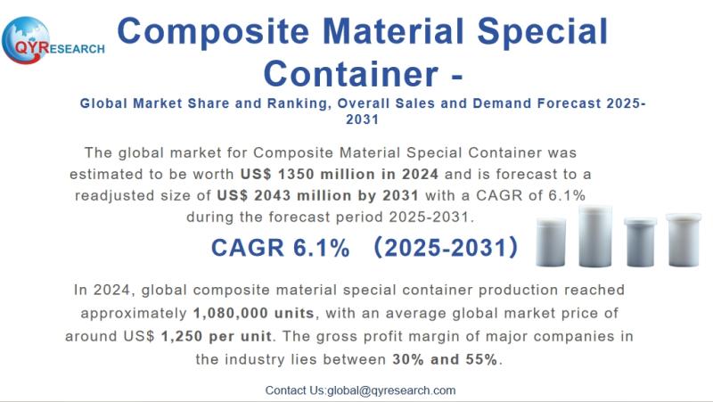 The global market for Composite Material Special Container was estimated to be worth US$ 1350 million in 2024 and is forecast to a readjusted size of US$ 2043 million by 2031 with a CAGR of 6.1% during the forecast period 2025-2031.