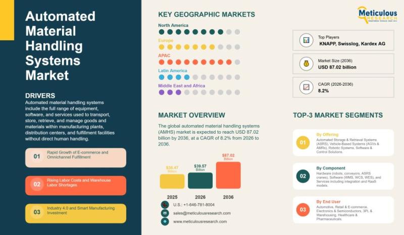 The automated material handling systems (AMHS) market is growing rapidly as businesses around the world seek faster, safer, and more efficient ways to move products within factories, warehouses, and fulfillment centers. In 2025, the market was valued at around USD 36.5 billion, and it is expected to more than double over the next decade, reaching USD 87 billion by 2036. This growth reflects a rising demand for systems that can…