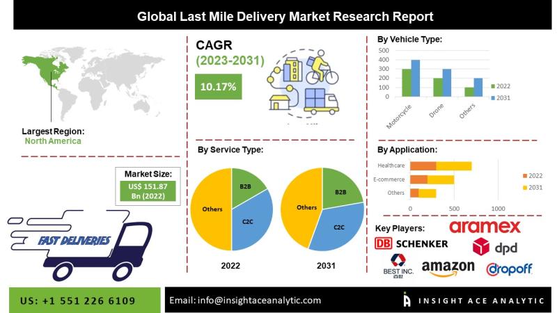 "Last Mile Delivery Market" in terms of revenue was estimated to be worth $164.74 billion in 2024 and is poised to reach $357.45 billion by 2031, growing at a CAGR of 10.37% from 2023 to 2031 according to a new report by InsightAce Analytic.Get Free Sample Report @ https://www.insightaceanalytic.com/request-sample/1631