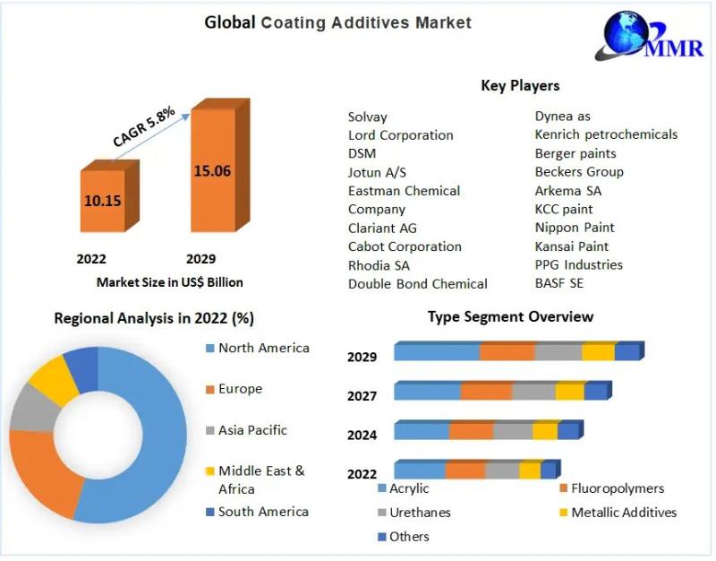 In the vibrant realm of coatings, where protection meets aesthetic appeal, lies a pivotal component shaping the industry's trajectory: coating additives. With the Coating Additives Market poised to burgeon from US$ 10.15 Billion in 2022 to nearly US$ 15.06 Billion by 2029, at a steady CAGR of 5.8%, the stage is set for a transformative journey fueled by innovation, sustainability, and performance excellence.