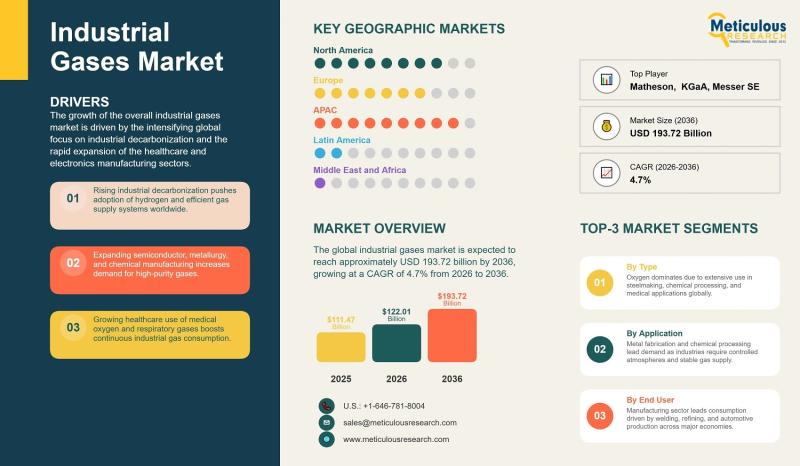Industrial Gases Market to Reach USD 193.72 Billion by 2036 at 4.7% CAGR