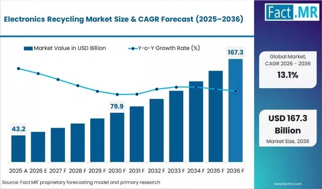 The global electronics recycling market is entering a transformational growth phase as industrial sectors and governments pivot toward sustainable resource management. According to the latest analysis by Fact.MR, the market is valued at USD 43.20 billion in 2025 and is projected to reach USD 167.33 billion by 2036, expanding at a robust CAGR of 13.1%. The sector is expected to generate an incremental opportunity of USD 118.47 billion over the…