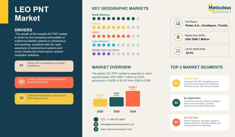 The global Low Earth Orbit Positioning, Navigation, and Timing market was valued at USD 118.6 million in 2025 and is projected to grow from USD 154.0 million in 2026 to approximately USD 2.55 billion by 2036, at a compound annual growth rate of 32.4%. That growth rate - among the highest of any segment in the space industry - tells a story about urgency. The world has become deeply dependent…