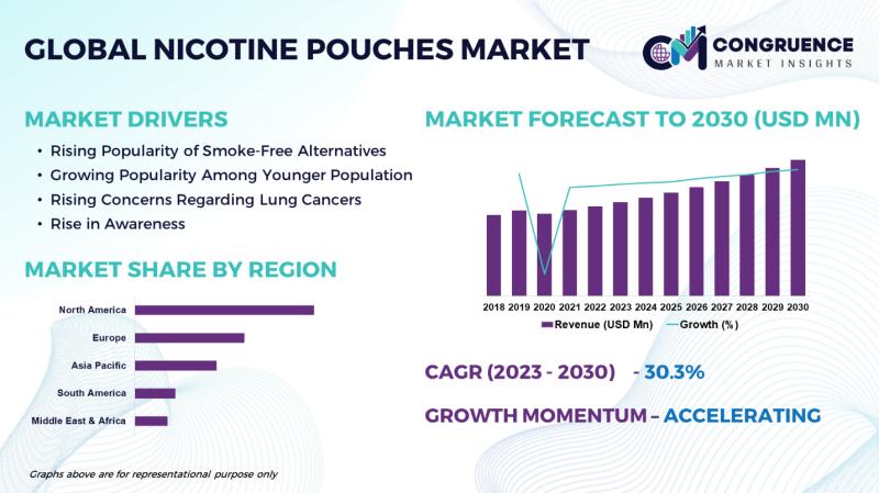 The latest report by Congruence Market Insights, titled 'Global Nicotine Pouches Market - Size, Trends, Share, Growth, Dynamics, Competition, and Opportunity Forecast, 2023 - 2030,' provides a thorough analysis of the global nicotine pouches market. The report meticulously examines both macro and micro trends, offering insights into the dynamic factors influencing the market. It encompasses a detailed exploration of qualitative and quantitative aspects, delivering a precise depiction of market size, growth rates, annual progression, prevailing trends, key drivers, promising opportunities, and potential challenges. Additionally, the report highlights the impact of crucial events such as new product launches or approvals, as well as the influence of external factors such as the COVID-19 pandemic on the nicotine pouches market landscape. This exhaustive examination equips businesses and stakeholders with invaluable intelligence for making informed decisions in the evolving nicotine pouches industry.Request full report sample here: https://www.congruencemarketinsights.com/report/nicotine-pouches-market?section=Request