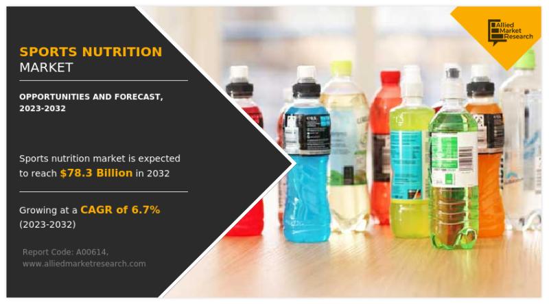 Sports nutrition market size generated $43,651.8 million in 2023 and is anticipated to generate $78,427.5 million by 2032, witnessing a CAGR of 6.7% from 2023 to 2032.